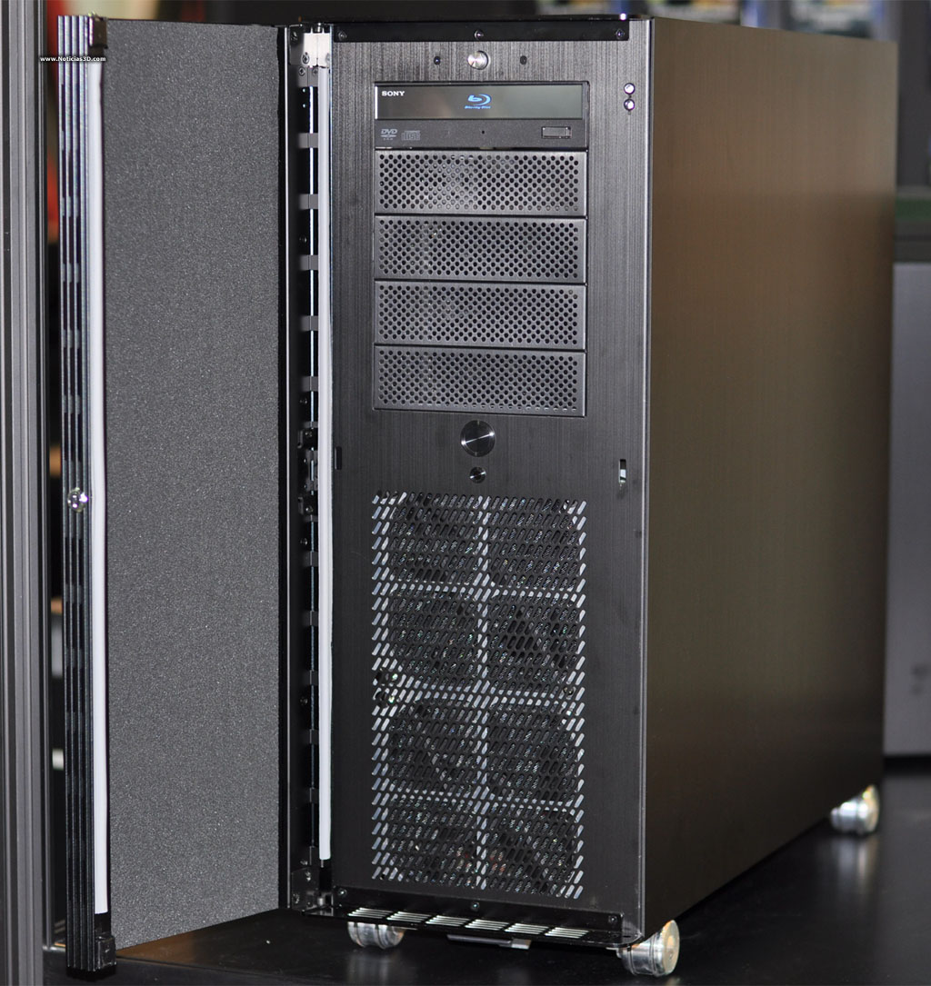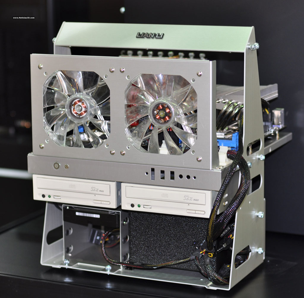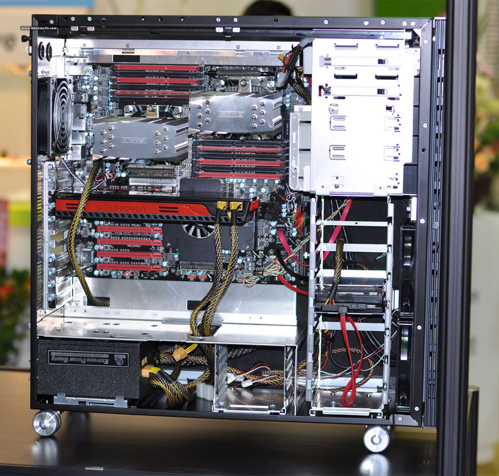 Envolvem Li nos apresenta suas novidades na Computex 2010. Além de seu amplo catálogo de caixas e fontes de alimentação, muitas elas já com conexões USB 3.0 frontais, cremos que devemos destacar a nova caixa da série “V” que conta, sobretudo, com uma capacidade interior impressionante. Dá suporte de placas com até 11 slots, 5 baías externas e até 10 discos duros. Também conta com 4 ventiladores e rodas para facilitar seu deslocamento. Ao igual que todo o resto da gama de Envolvem Li, esta caixa está construída integralmente em alumínio e conta com uma tampa frontal.