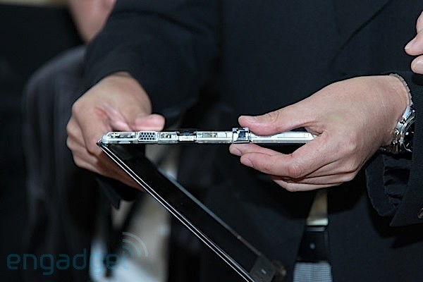 Para os que não saibam, o computador tem uma tela de 11.1 polegadas com uma grossura de 13.9mm e um peso de 655g (me causa prazer até ler sobre ela). Vem com um processador Atom de 2GHz, 2GB de RAM, placa de video Intel GMA A500 e 64GB de armazenamento através de um disco SSD.