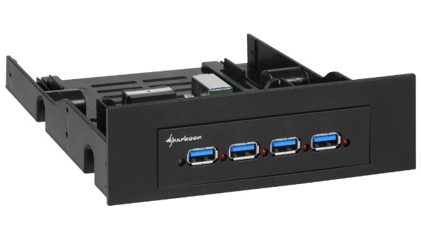 Sharkoon lançou ao mercado seu novo hub frontal com quatro USB 3.0. Este novo produto se pode instalar numa baía de 3,5″ ou 2,5″ e vai destinado a fazer a vida mais fácil a todos aqueles que precisem de uma grande quantidade de deste tipo para conectar seus gadgets.
