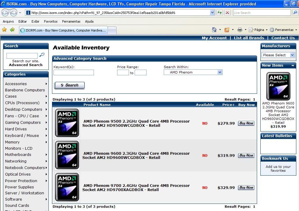Uma loja na internet deu algumas pistas dos novos processadores da AMD, os Phenoms X4, listando alguns modelos com seus respectivos preços, conforme pode ser visto abaixo.