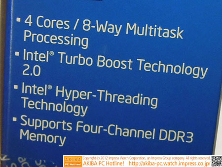 Core i7-3820 tem o código “SR0LD” , este novo CPU tem 4 núcleos rodando a 3.6 GHz, 256 KB L2 por núcleo e 10 MB de cache L3 partilhada. Como outros processador vai ser vendido sem dissipador de calor.