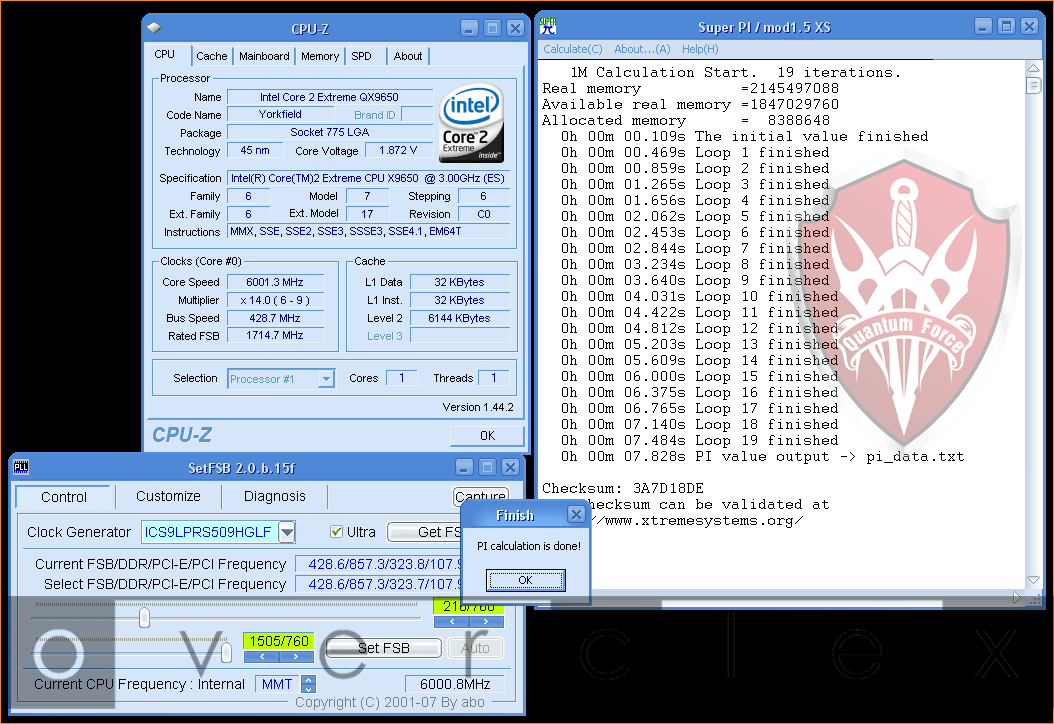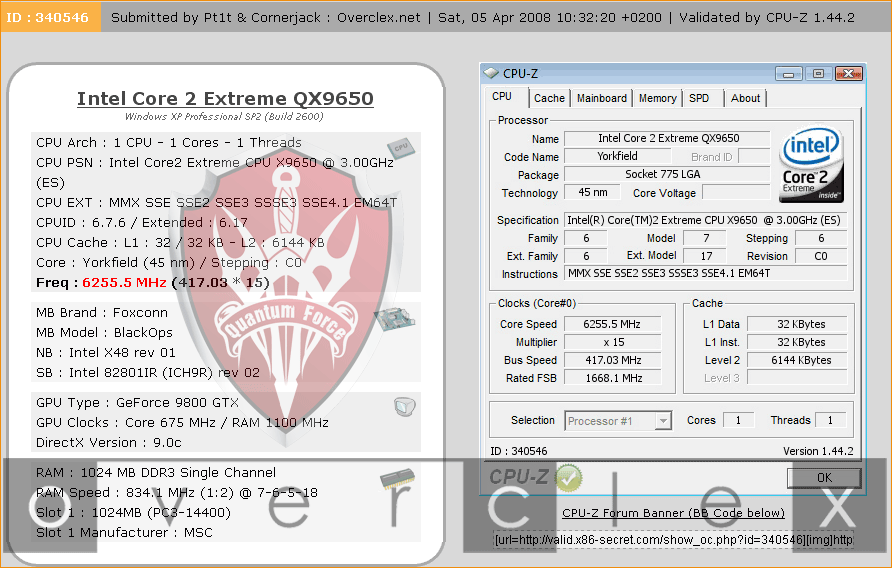 Recorde de overclock do Core 2 Extreme QX9650: 6.255 MHz