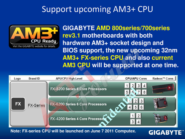 Sem dúvida os processadores AMD Bulldozer FX são um dos produtos mais esperados de AMD nos ultimos anos e seu lançamento está a poucos meses, neste contexto Gigabyte mediante um documento interno onde indica a compatibilidade de suas placas com Bulldozer (algo que já informamos nesta nota), menciona que estes processadores se lançarão no dia 7 de Junho no marco da Computex 2011.