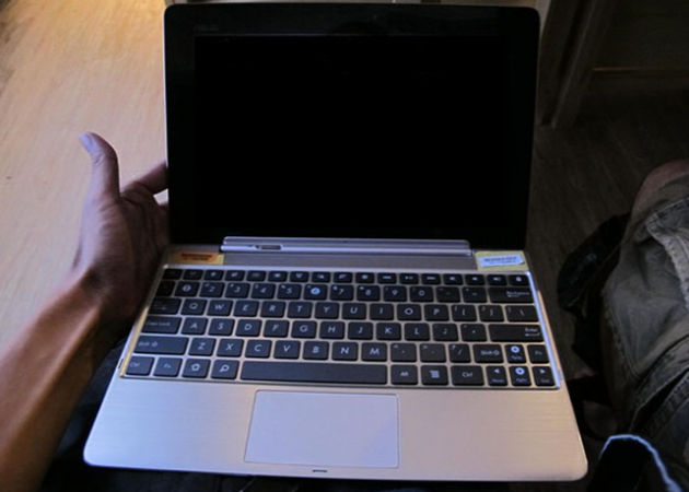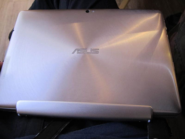 A parte traseira da tableta revela câmara e flash junto ao logo de ASUS, enquanto no lateral se deixa ver um conector para cartões de memória microSD e uma saída mini HDMI para sacar conteúdo em telas compatíveis com resoluções de até 1080p.