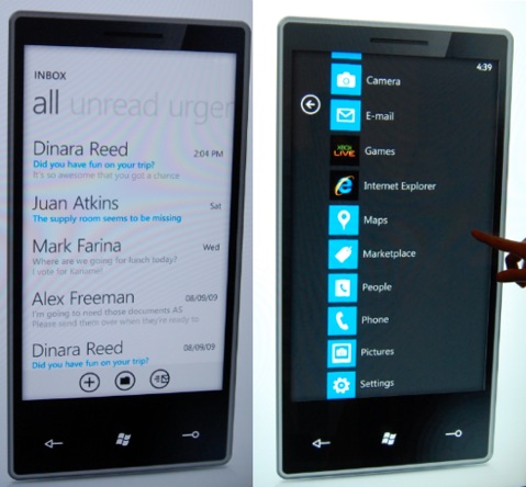 Windows Mobile 7 vinha instalado em algumas telas tácteis, para que a imprensa pudesse prová-lo, conquanto não ofereciam a experiência final do produto. A tela se pode expandir verticalmente, o que vai permitir pôr tantos elementos como desejemos. Toda essa informação que teremos a mão se pode atualizar por Internet, sobretudo a referida a nossas redes sociais favoritas.