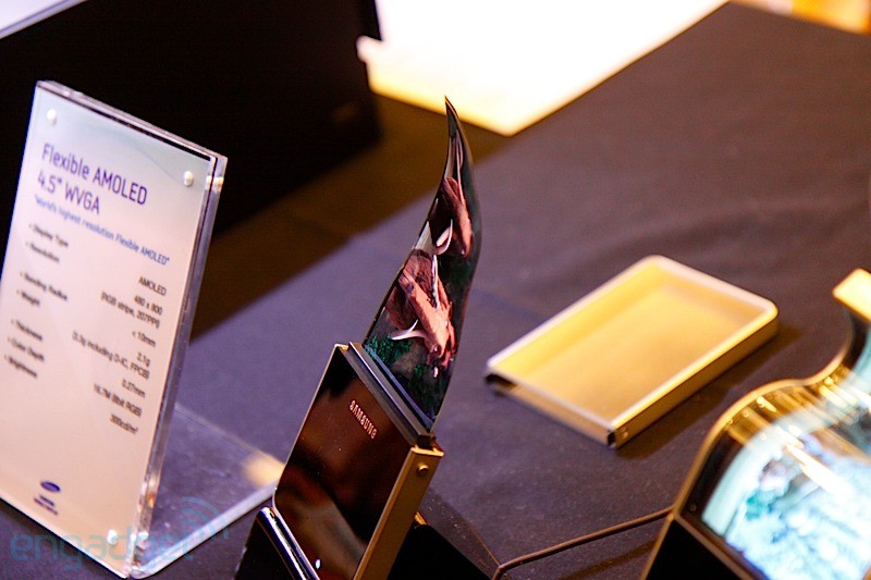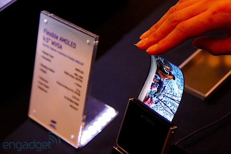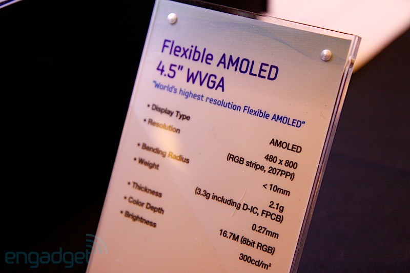 Samsung deixou boquiabiertos aos presentes na CES 2011, o fabricante sacou a reluzir ao público novos protótipos de telas flexíveis de tipo AMOLED. Com um tamanho de 4,3 polegadas e uma resolução de 480 x 800 pixéis com um brilho de 300 cd/m2, sua grossura é de 0,27 mm e pesam umas 2,1 gramas.